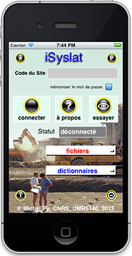 ...de gérer une partie des données de terrain directement à partir d'un iPhone ou d'un iPad connecté en 3G ou en Wifi, grâce à l'application iSyslat™ qui permet également de consulter les dictionnaires de référence DICOCER et DICOMON.